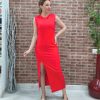 Vestido largo, licra, ajustado, con abertura lateral, elástico, varios colores disponibles. Ideal para ocasiones especiales.